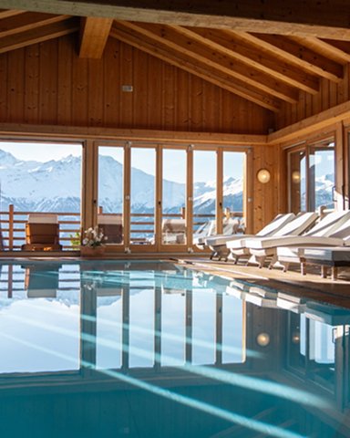 A grand 1200m² luxurious hideaway on the Savoleyres side featuring a majestic 25-meter indoor swimming pool.