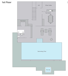 Descend to the lower ground floor, and the scale shifts from grand entertaining to absolute serenity. This dedicated wellness sanctuary defies the standard of private residential spas. The 25-meter indoor pool is a structural rarity in Verbier, featuring floor-to-ceiling glass walls that reflect the snowy peaks directly into the water. The transition from the cold mountain air to this humid oasis is entirely surreal. Accompanied by a stone-clad Hammam, a traditional Swedish sauna, a deep cold plunge pool, and a tranquil massage room, the art of post-ski recovery is elevated to a primary lifestyle.
